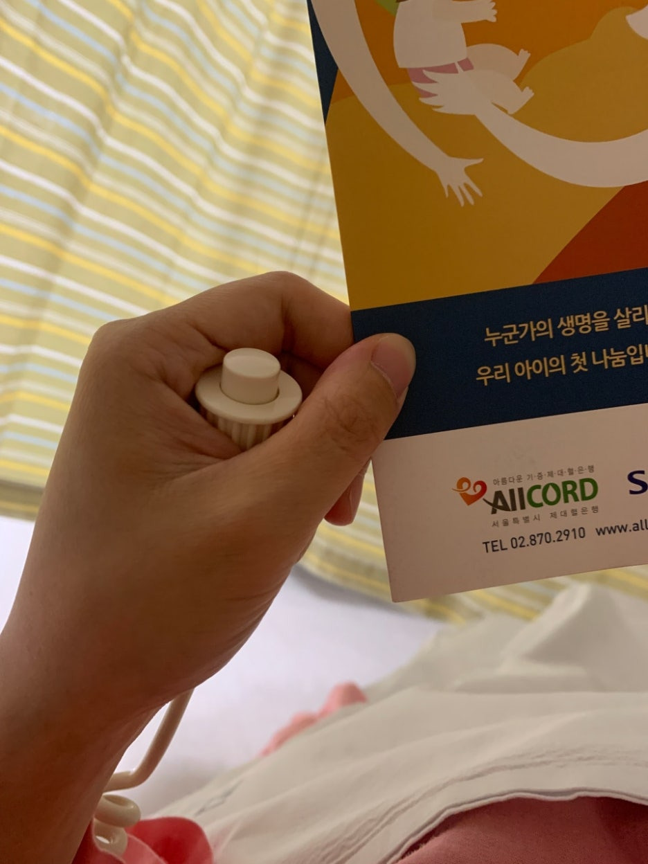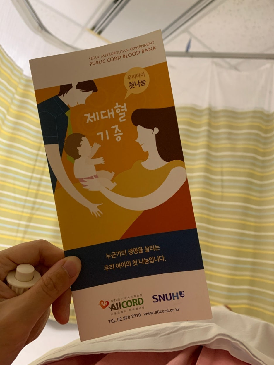 이후 입원복으로 환복하고 분만장으로가서 태동검사를 20분간 받는다. 20분동안 태동이 크게 두번 정도 있으면 통과. 아니면 나중에 다시 검사받아야 한다. 그리고 제대혈기증 동의서에 대해서도 의사를 묻는데, 자유선택이고 난 기증동의 싸인했다. 제대혈이라는 것이 생소하게 들릴수도 있는데, 난 그전에 혈액암을 제대혈에 있는 조혈 모세포로 치료한다는 얘기를 듣기도했고, 이것 말고도 다양한 경우에 쓰인다고 알고 있어서 기증하기로했다.